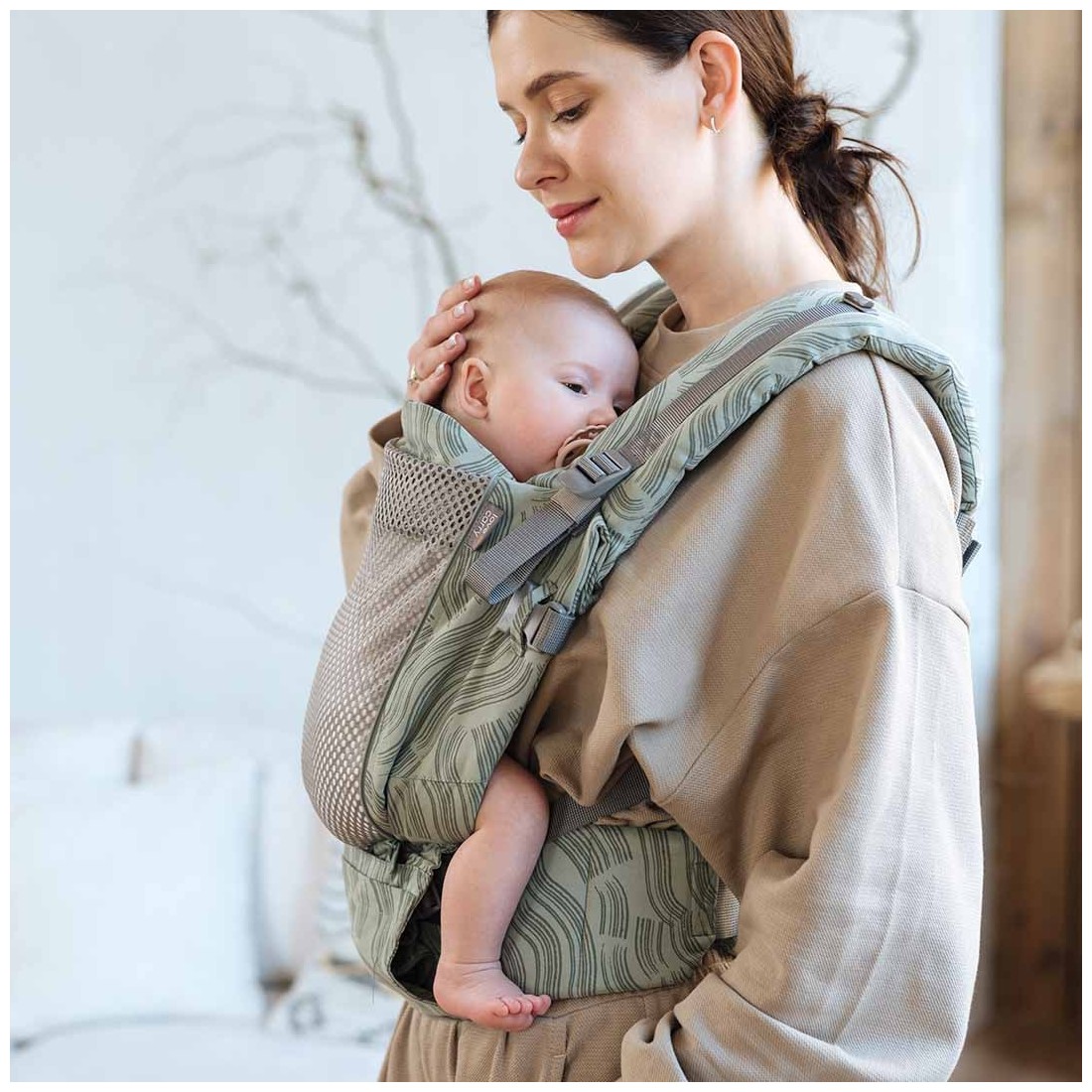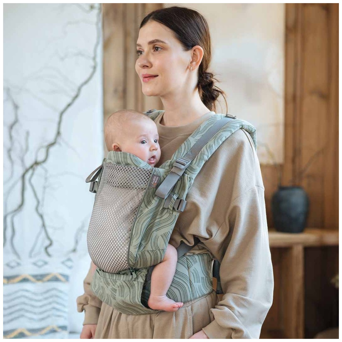 One of its standout features is the breathable 3D mesh panel, which can be easily uncovered with two side zippers. Made from wrap fabric, different models include organic cotton, cotton blends, and soft bamboo fabric. It meets European safety standards and is certified by the Hip Dysplasia Institute as a hip-healthy baby carrier.