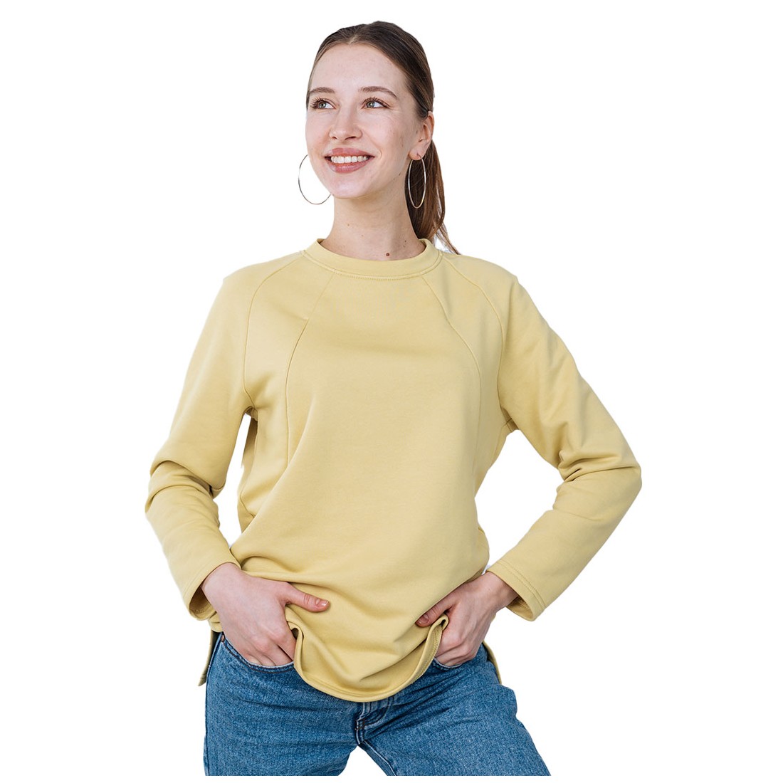 Its straight-cut design not only adds a stylish touch but also allows for a flexible fit during pregnancy, adapting to a growing belly. Additionally, this sweatshirt includes specific features for breastfeeding.
