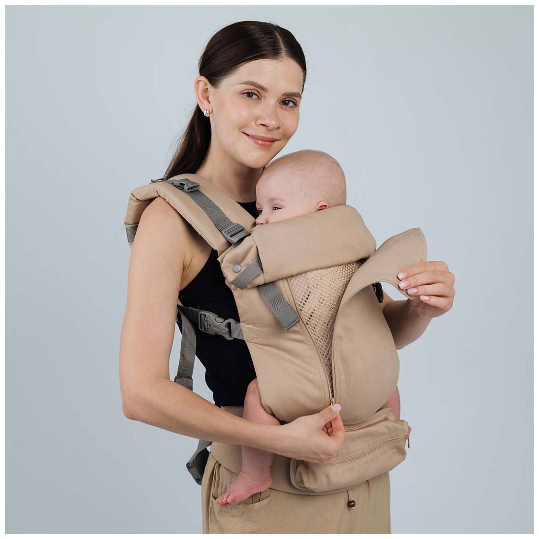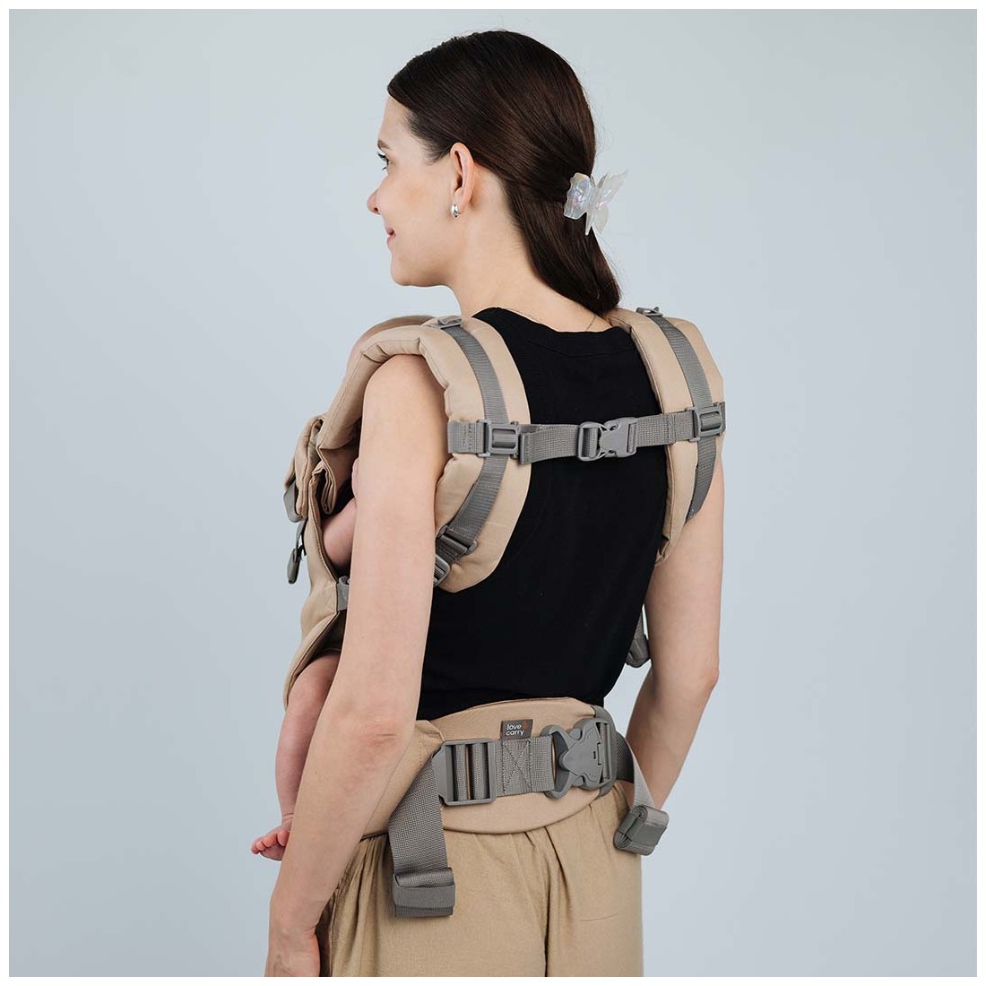 If your baby cannot sit unassisted, we recommend the Love and Carry One model, which provides a more ergonomic position for the baby. It features two strap configuration options and the ability to apply direct support to the spine.