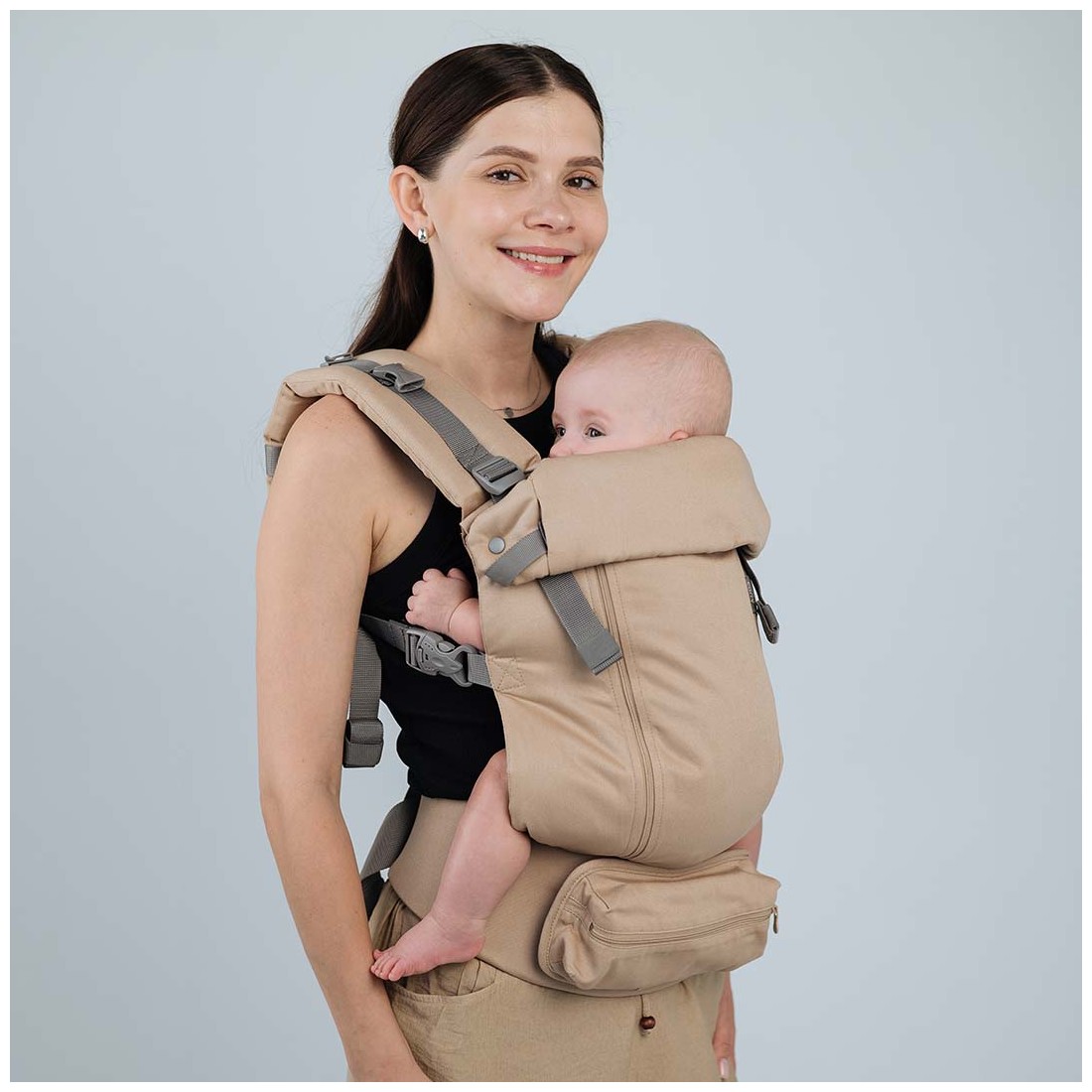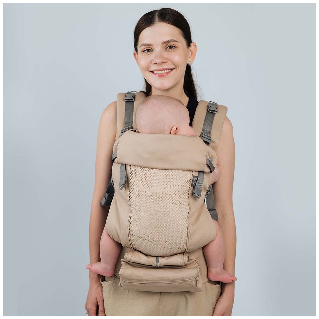 Oferece posições de uso frontal, lateral e nas costas, com painel ajustável em 3 posições e opções de alças configuráveis para maximizar o conforto do portador. Conta com painel de malha respirável e reforço lombar.
