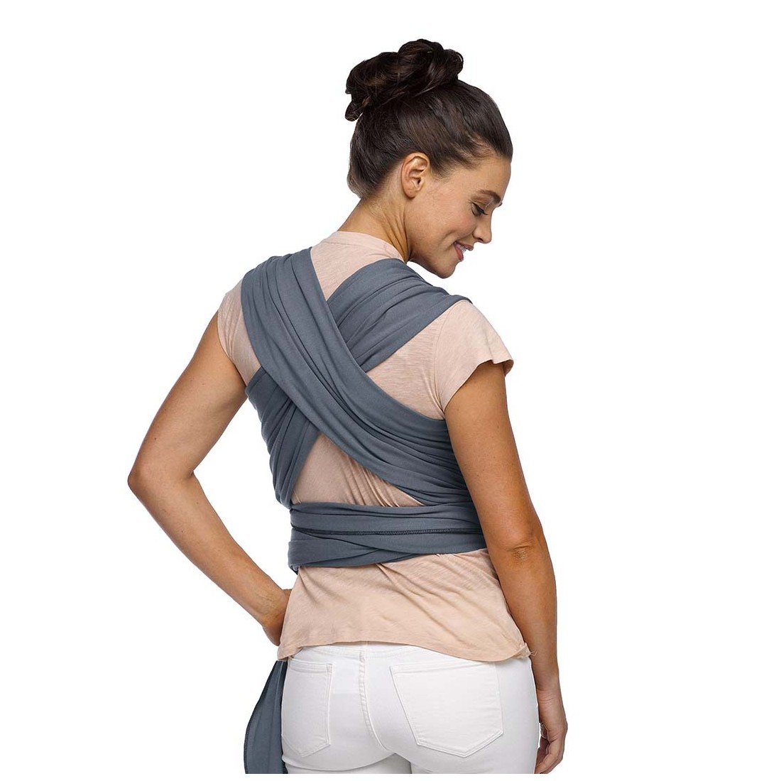 O nó pré-atado permite atar o sling antes de colocar o bebé, facilitando a sua utilização e permitindo mudar de posição sem desfazer o nó.