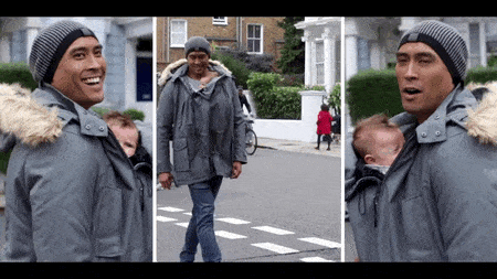 leva a tu bebé cómodamente en la parte frontal con el abrigo Wombat.